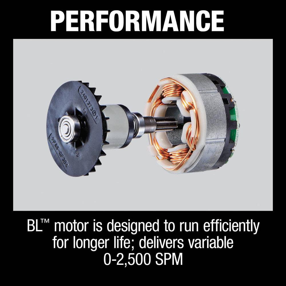 - BL‚Ñ¢ Brushless motor is designed to run cooler and more efficiently for longer life; delivers variable 0-3,000 SPM