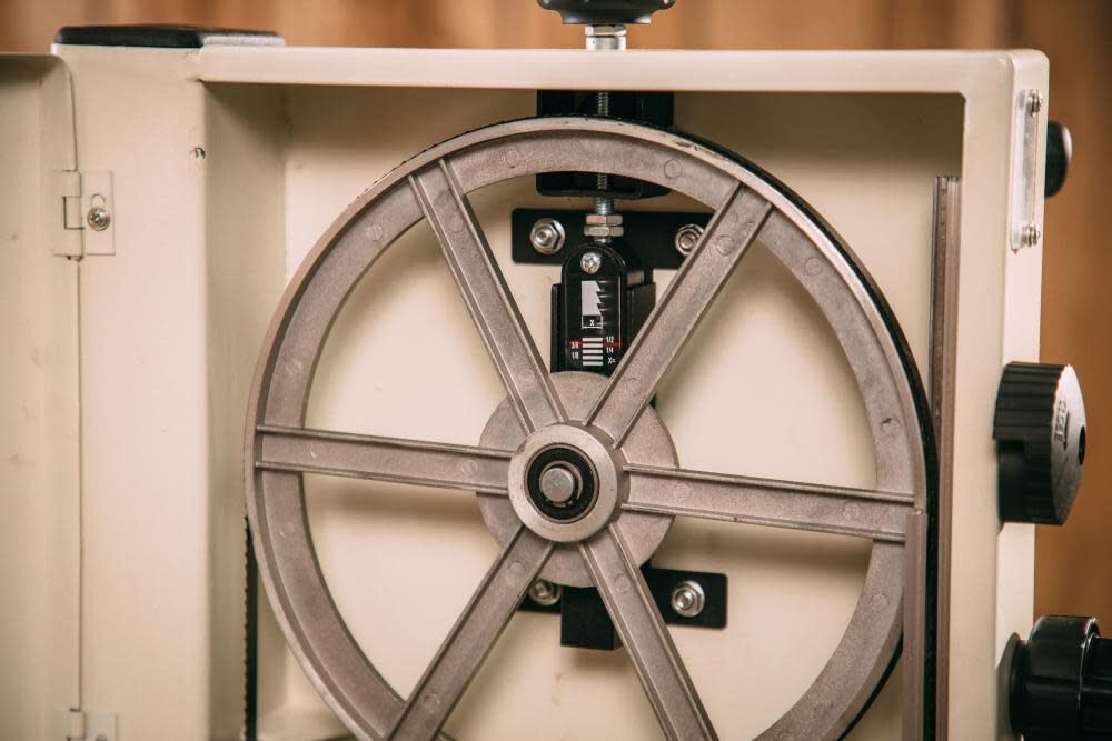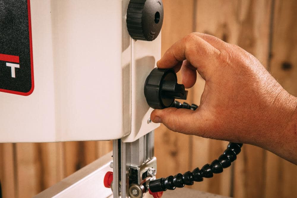 With quick release blade tension, upper and lower ball bearing blade guides, an extra-large cast iron tilting table, and an easily adjustable LED work light - this well-equipped Bandsaw has all the features you're used to on bigger bandsaws.