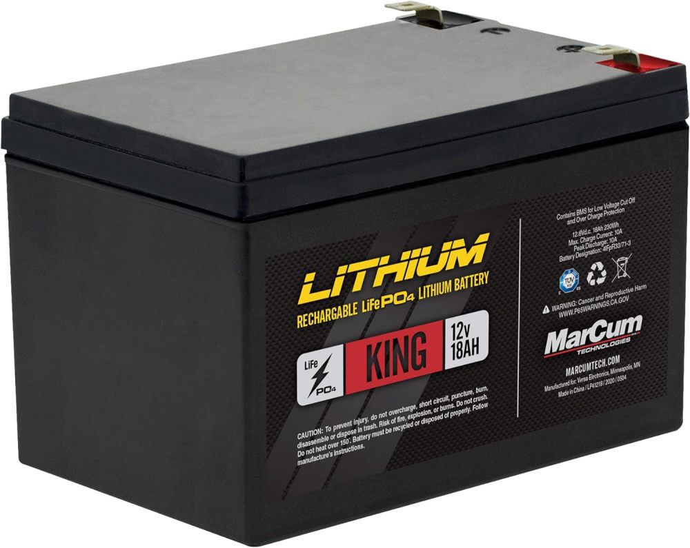 The MarCum King Lithium LiFePO4 at 12V18AH delivers deep cycle performance in a compact, portable form-factor.
