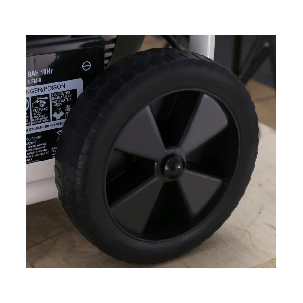 - 1 In. Tubular steel frame, digital voltage meter, includes: spark plug wrench and 12V 9Ah battery