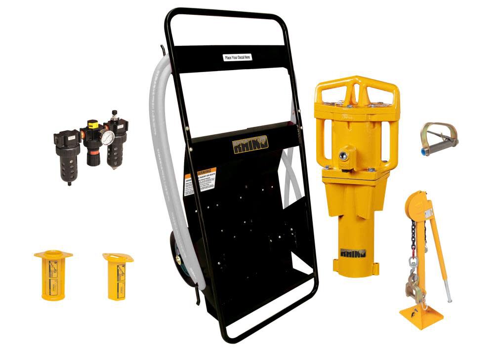 - Kit includes transport cart, MP-3 post puller, PD-110 Post Driver w/4-14" Chuck, 2-1/2" chuck adapter, 2" chuck adapter, 3 to 4 lb channel post chuck, throttle valve, and filter regulator lubricator.