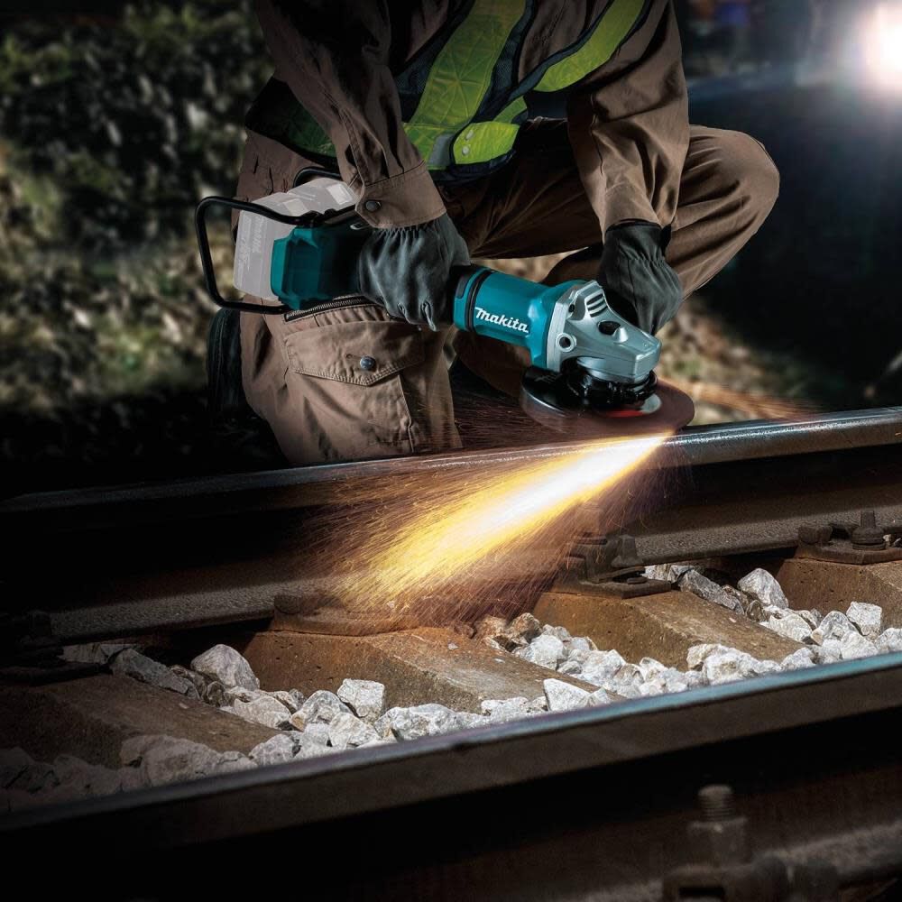 The Makita LXTÆ 9 Inch cut-off/angle grinder is powered by a brushless motor that runs cooler and more efficiently for long duration and also optimizes battery energy use for up to 50%.