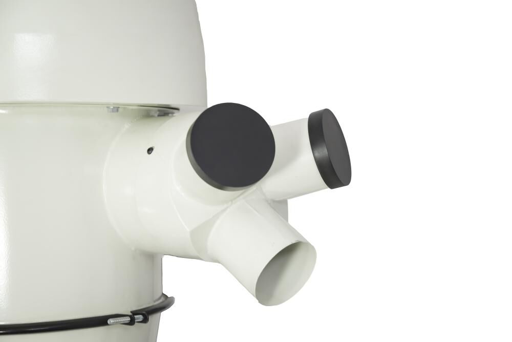 The 2.5 horsepower cyclone dust collector has a newly designed impeller that reduces the stress on the motor while meeting or exceeding air flow compared to other cyclones in their class.
