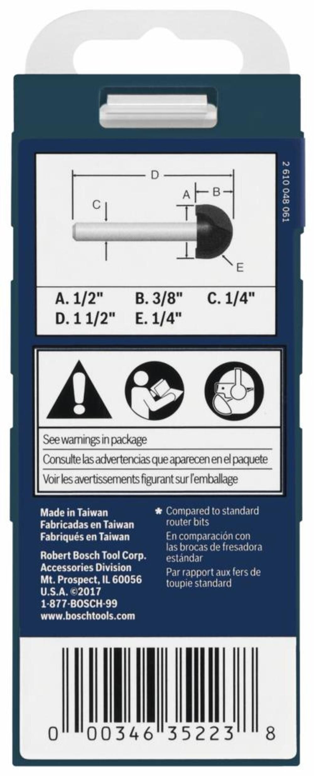 Micrograin carbide-tip router bit design – ensures consistently smooth finish cuts, with superior wear resistance