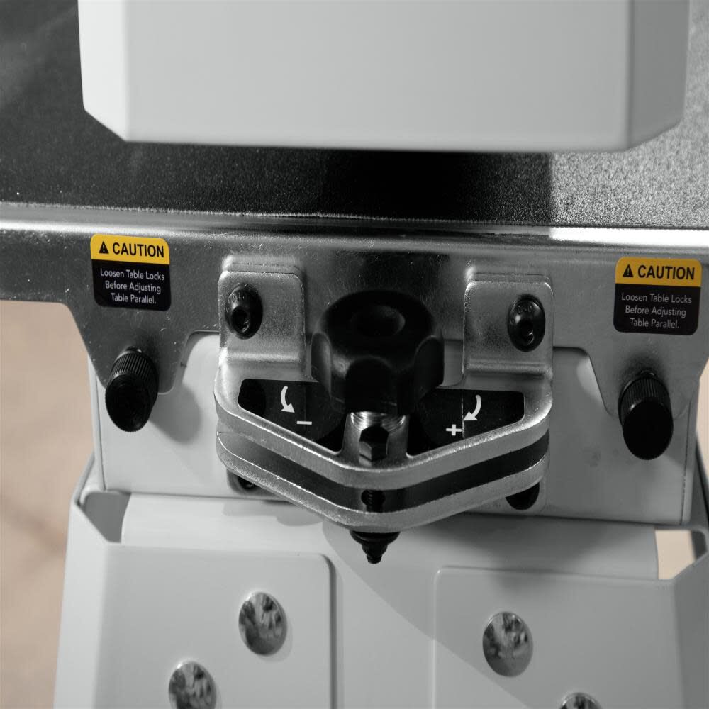Parallelism adjust dial features a stop to quickly return the conveyor bed to a flat position