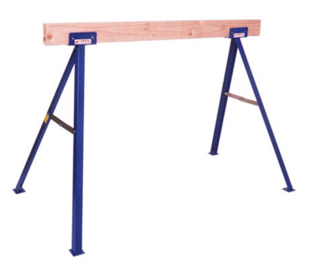 Fast, Easy set-up; Gripping Teeth clamp 2X crossmember without any screws or nails; Folds compactly for easy storage; Adjust the height or length to whatever you need by using different 2X lumber as crossmembers; Powder coat finish; 1/8"" x 1 1/4"" x 1 1/4"" Angle Iron Legs for long-lasting durability; Lightweight but very strong and sturdy; Made in the USA"