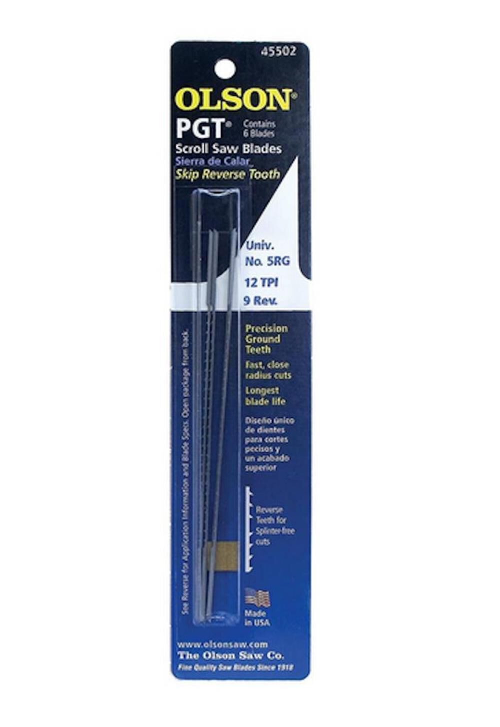 Olson Saw Company 5In 12TPI Precision Ground Tooth Skip Reverse Tooth Scroll Saw Blade