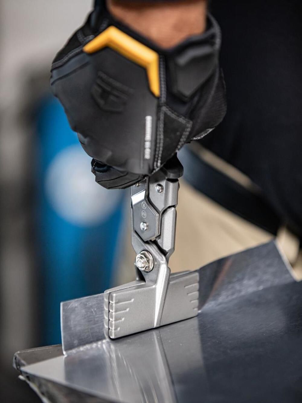 - Jaw folds 22-gauge steel and 24-gauge stainless steel