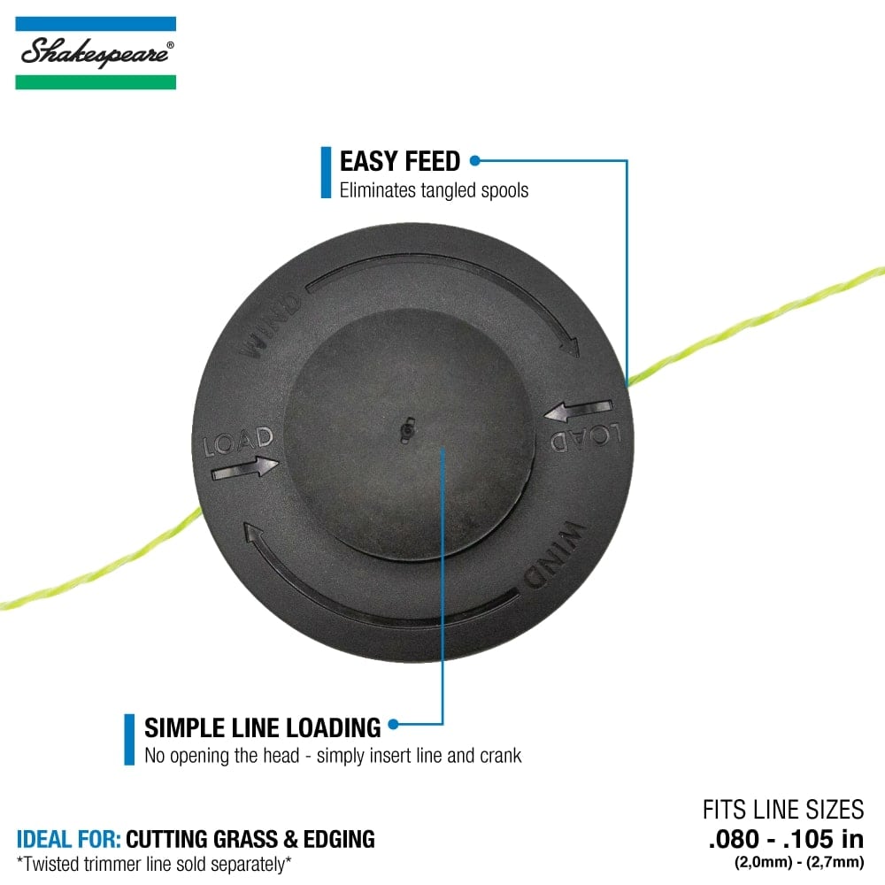 with its auto winding technology, you never have to open the head, simply line up the arrows on the bump knob, insert the line, and crank.