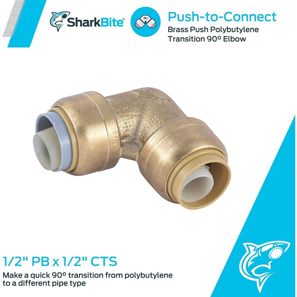 Sharkbite 1/2in PB x 1/2in CTS Brass 90 Deg Transition Elbow