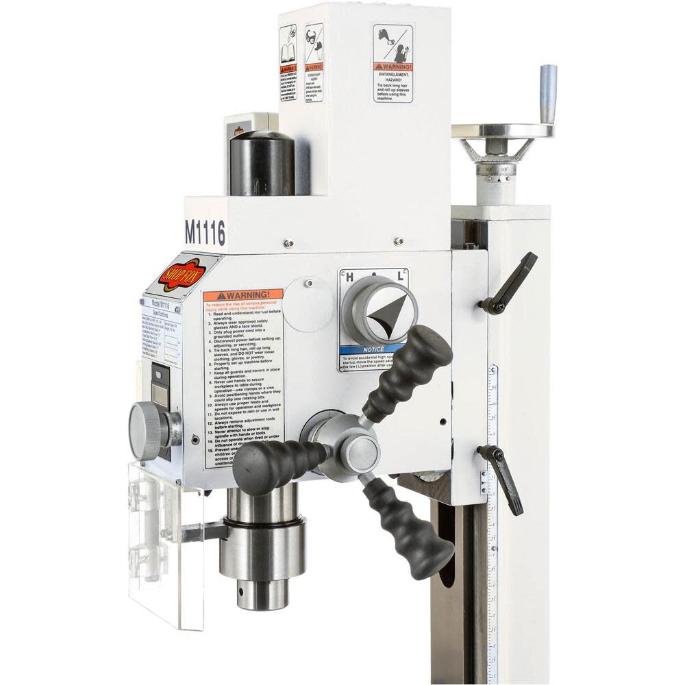 This great little machine sports some of the same features found on much larger mill/drills: dovetail column, variable speed 3/4HP motor, R8 spindle with digital read out, tapered gibs with double locks, and large 5-3/4 In.