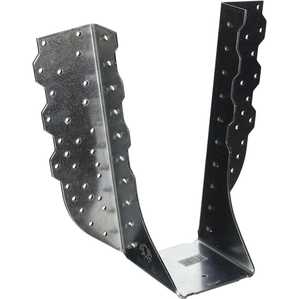 This girder hanger features double-shear nailing that distributes the load through two points on each joist nail for greater strength.