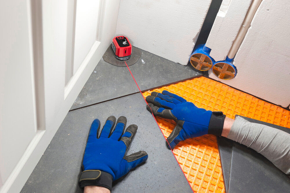 ALIGN WITH EASE - Laser line projects on the wall or floor; includes protractor for accuracy