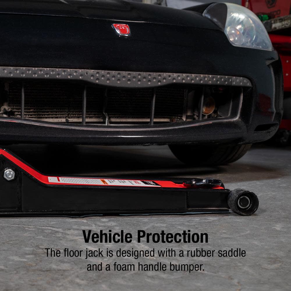 Providing a minimum elevation of 2.75 inches, this Sunex service jack comes with an 18-inch throw that extends all the way to the outer pinch welds.