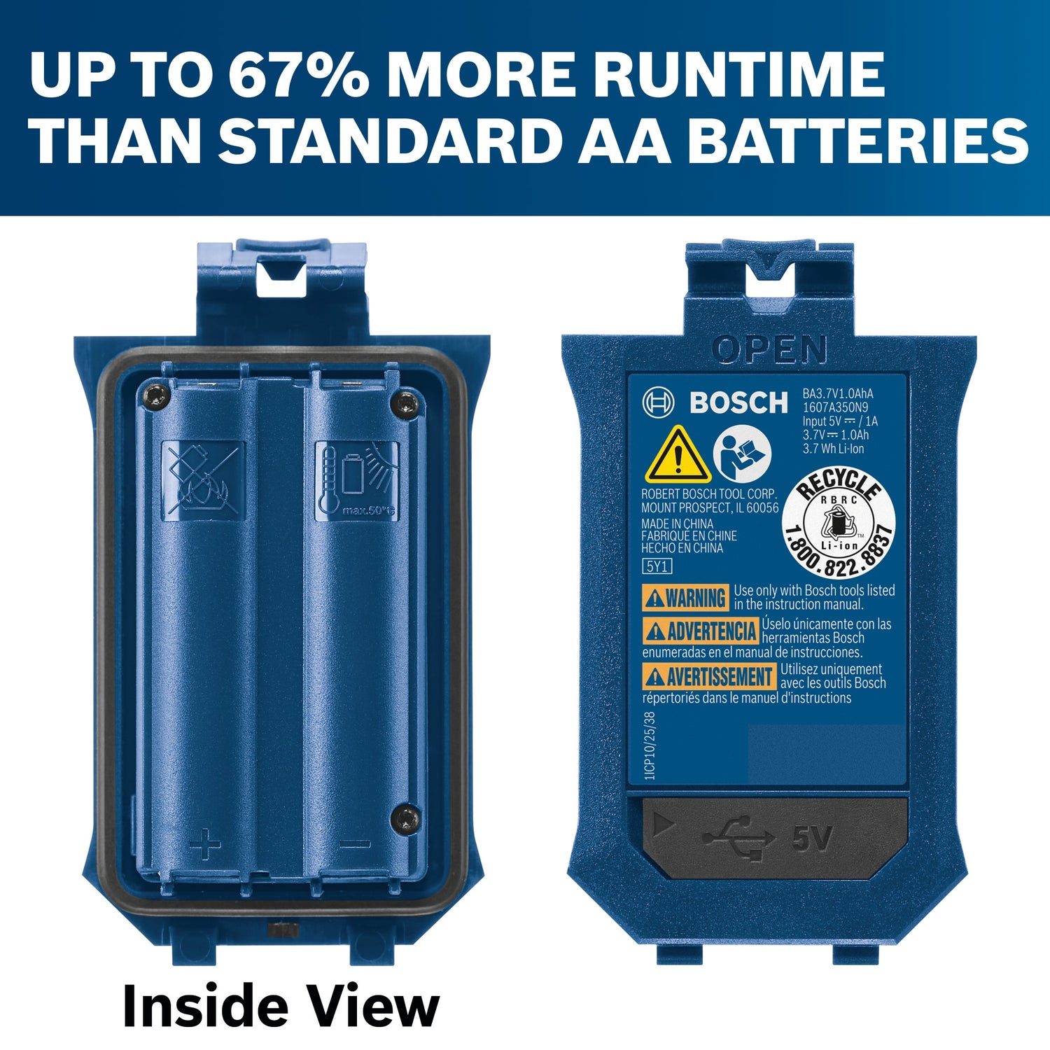 Flexibility – provides a Li-ion option instead of AA alkaline batteries in certain BLAZE™ Laser Measures