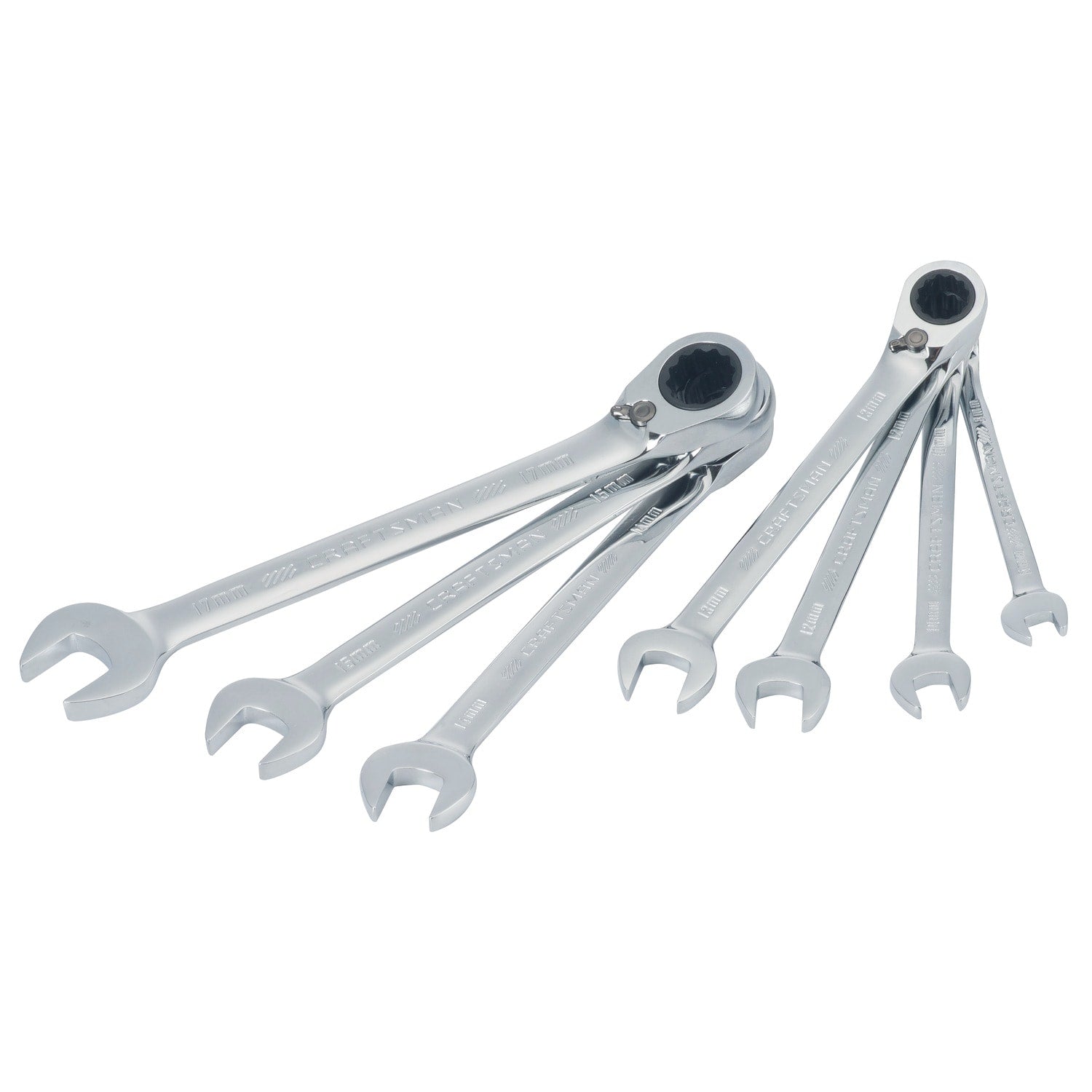Includes (7) Reversible Ratcheting Wrenches Metric (8mm, 10mm, 12mm, 13mm, 14mm, 15mm, 17mm)