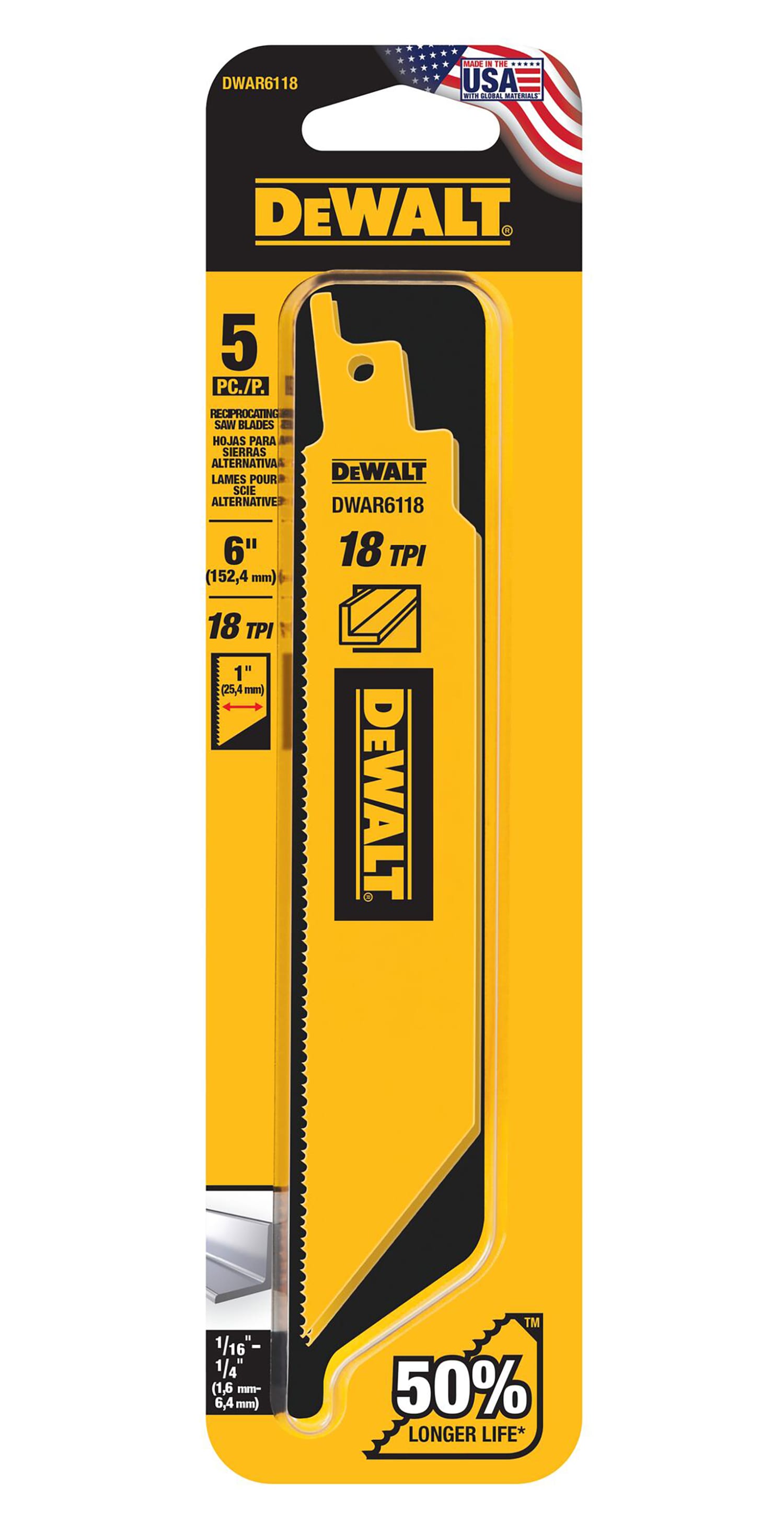 Includes: (5) 6-in 18TPI reciprocating saw blade