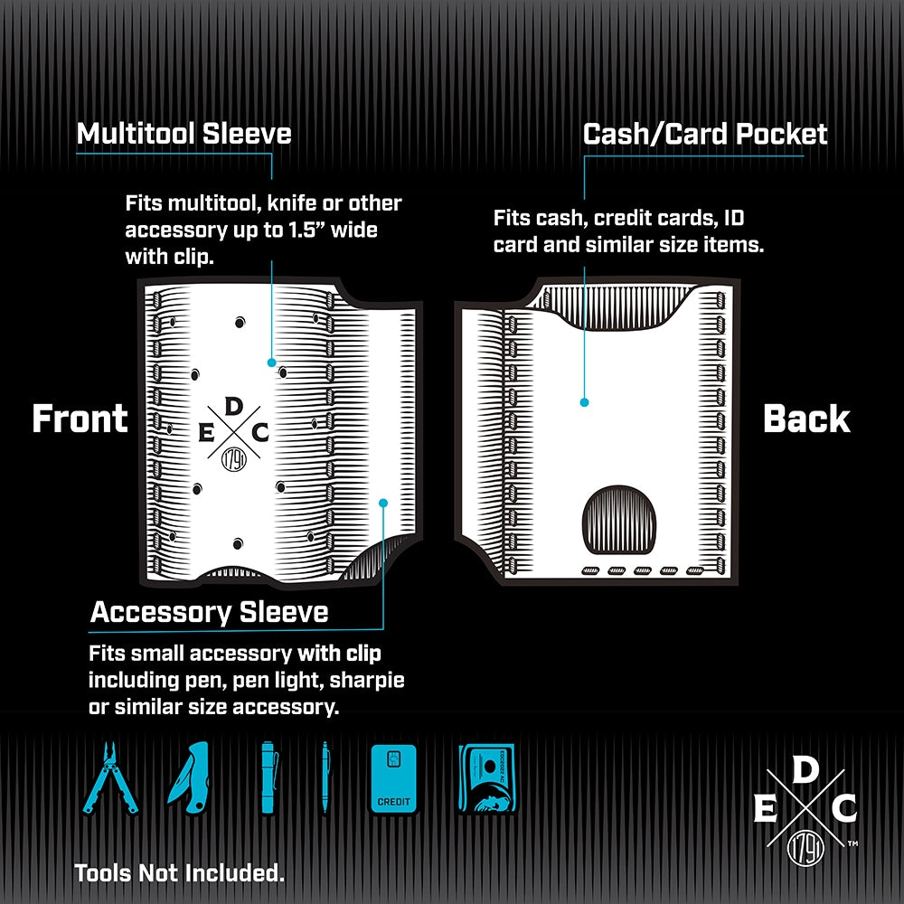 Fits 1 small multitool, 1 small accessory and cash / cards