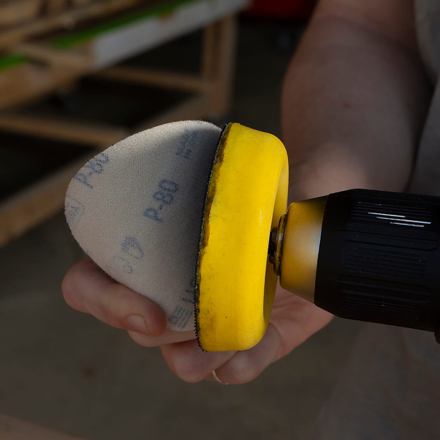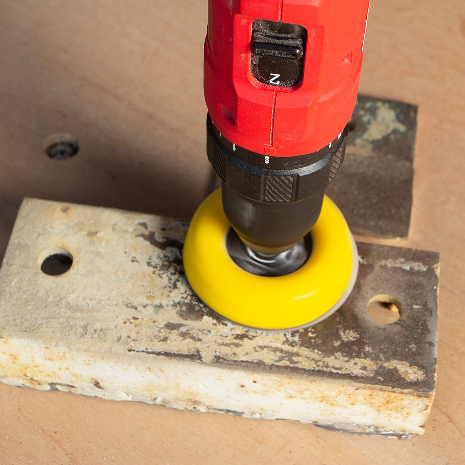 The Sturdy Foam Backer Pad Installs Easily Into A Conventional Drill And Features Hook & Loop Backing For Quick And Easy Grit Changes.