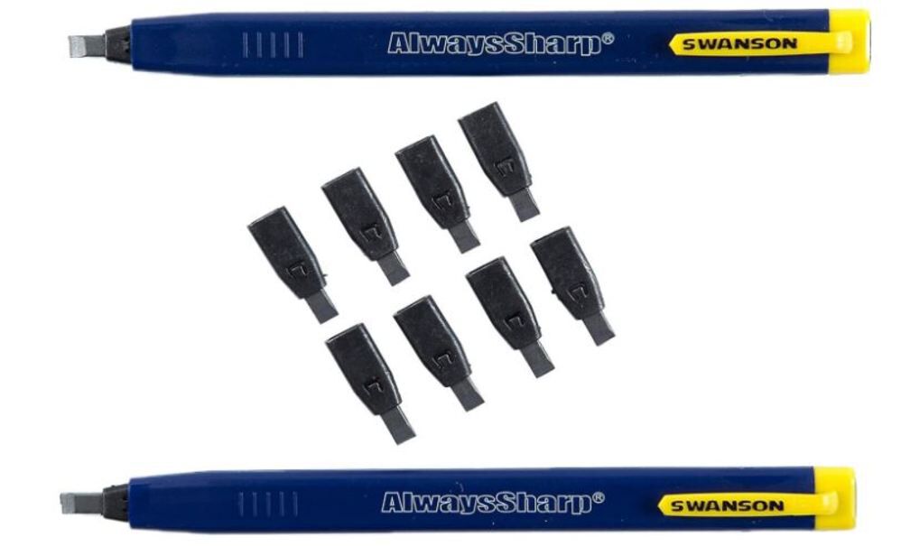 The SwansonÆ AlwaysSharpƆcarpenter pencil features refillable graphite that eliminates sharpening.
