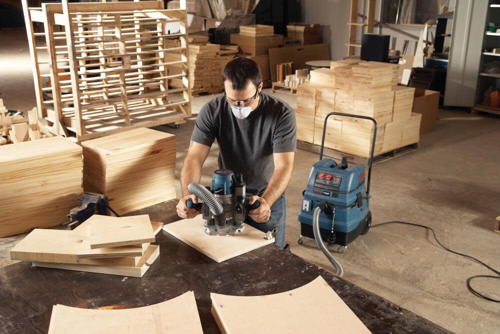 - Shielded, compact ball-bearing pilot guides bit along edge of material