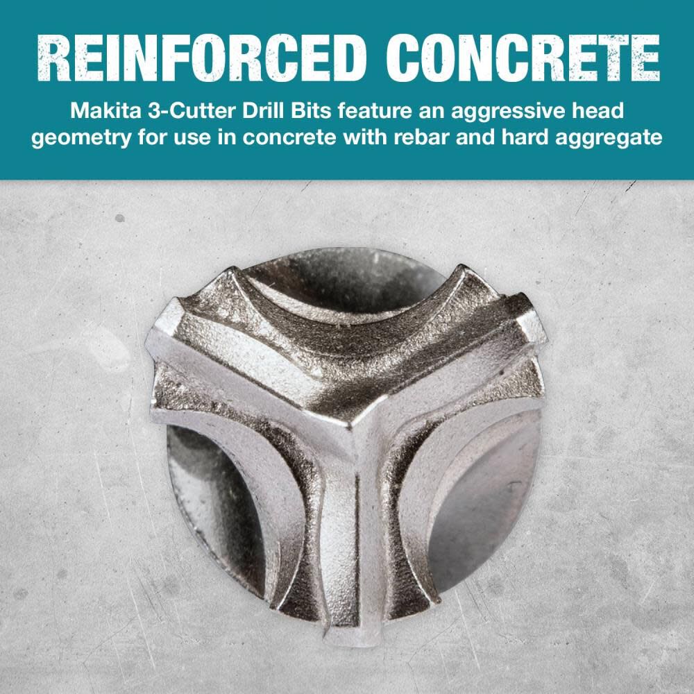 Makita SDS-Plus 3-cutter bits are ideal for a range of general purpose drilling applications in concrete and reinforced concrete.