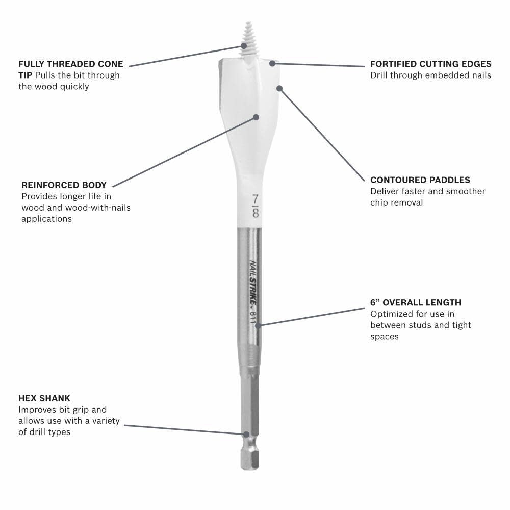 The bit features reamer edges made of tough, reinforced steel that cut through up to 30 nails.