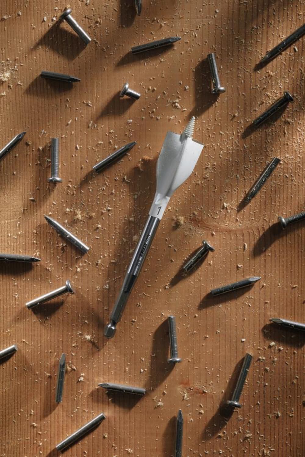Reinforced reamer cutting edges – make this bit the first wood-boring bit to drill through nails