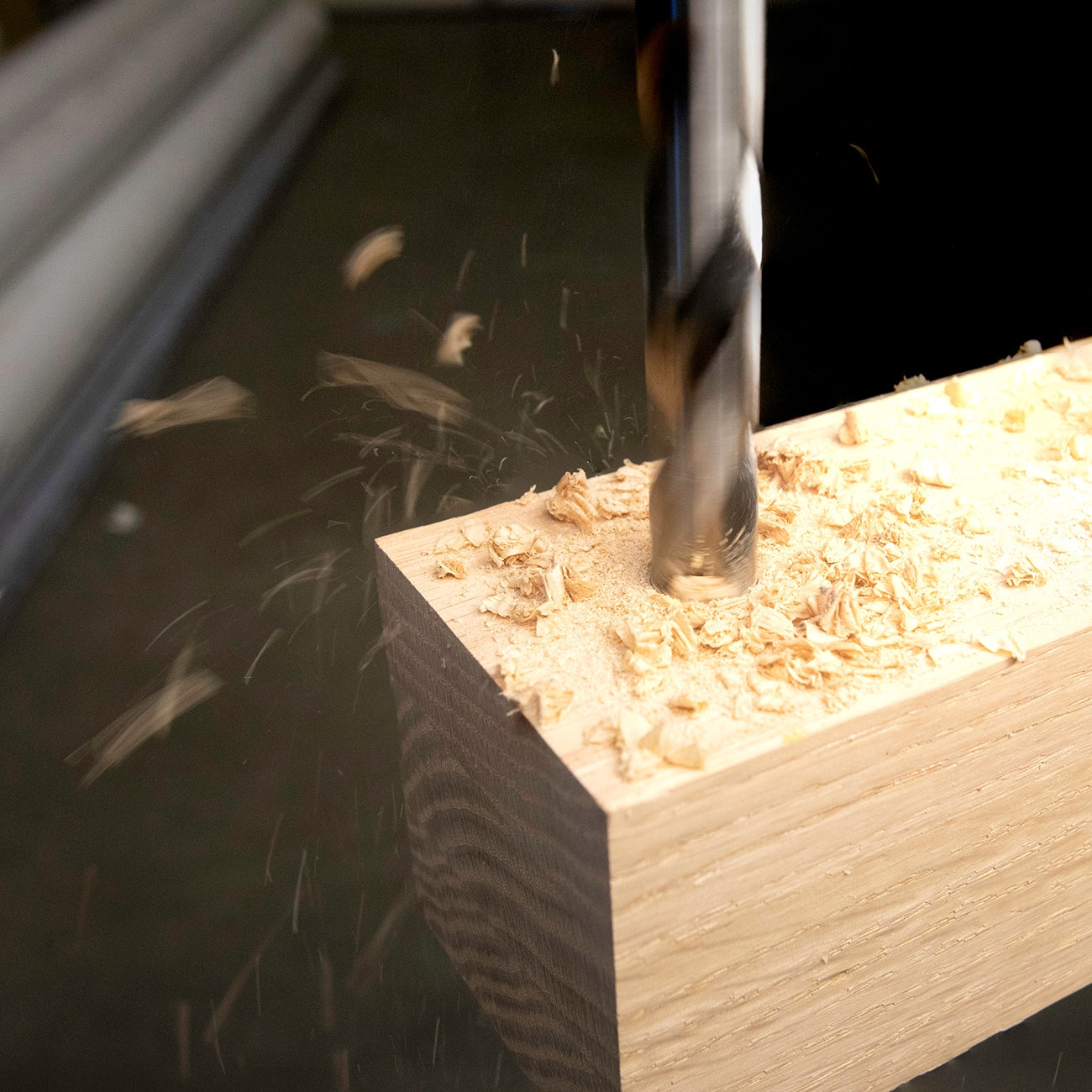 Optimized cutting geometry reduces cutting friction and heat while dual flute lands ensure holes are straight and burr-free, making this bit ideal for through-holes and installing dowels.