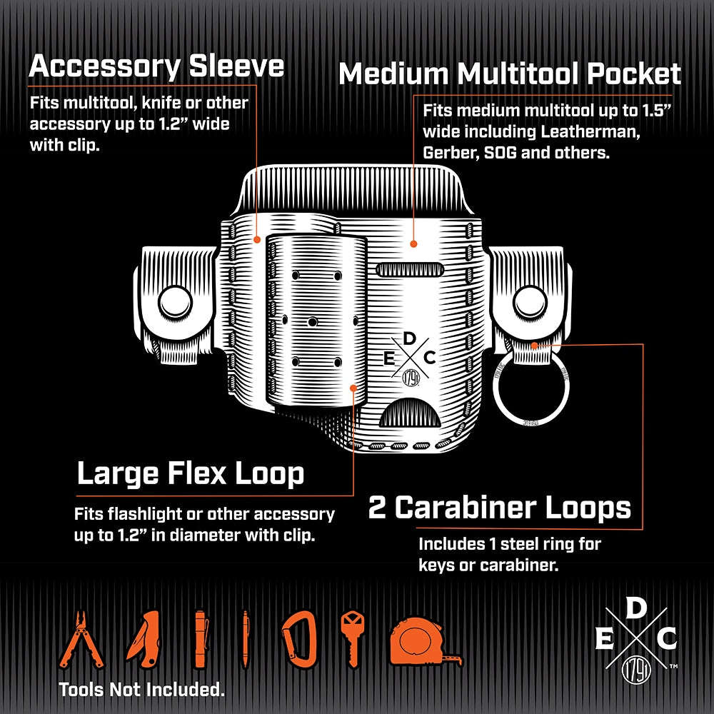 Everyday Carry Tool Organizer for S/M Multitool, Knife, Flashlight with Large Flex and Action-Snap Belt Attachment WEB-ST-AS-LF-BUR-A