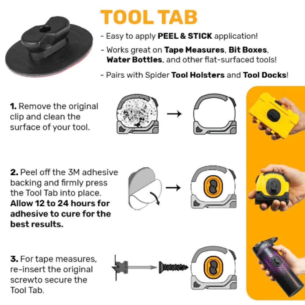 - UNIVERSAL: Tool Grips stretch to fit the handle of any tool. Tool Tabs adhere to flat surfaced tools such as tape measures and bit boxes. Hammer Tabs can be applied to any hand tool with a curved handle such as hammers, wrenches, etc.