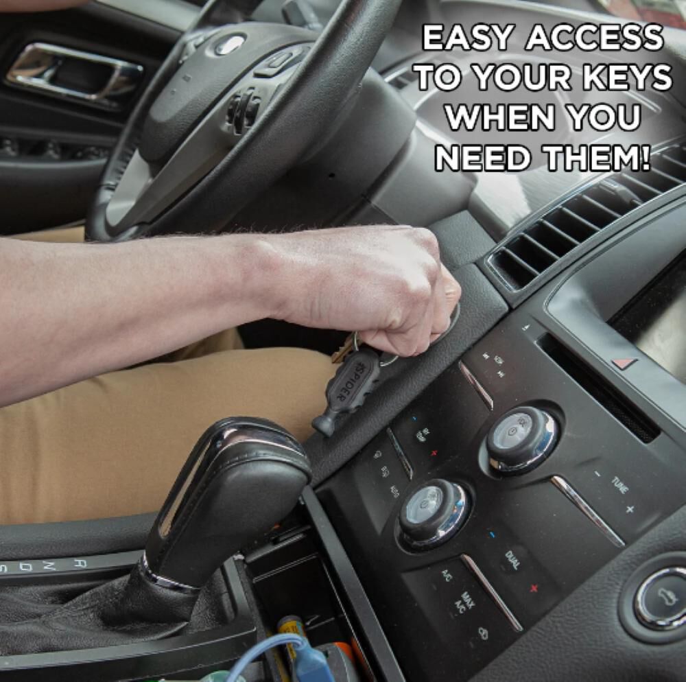 Keep your keys and your bits within reach at all times with the Spider Key Fob, which securely attaches our Spider Tool Holster* or Tool Docks* (sold separately*) The Key Fob also has built-in slots for three driver bits. Includes a metal key ring.