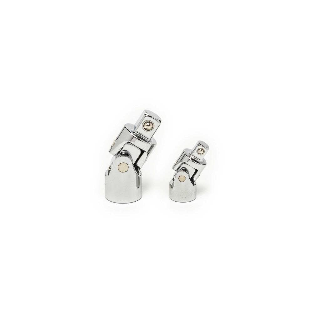 Universal joints in 1/4"" & 3/8"" drive providing angled access to more fasteners reducing & adapters covering 4 drive sizes, 1/4"", 3/8"", 1/2"", 3/4"" to allow drive tools be functional with additional sockets.