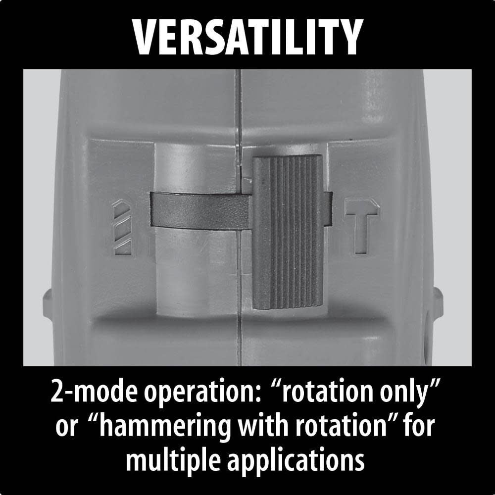 The 2-mode switch allows for fast mode change between rotation only and hammering with rotation.