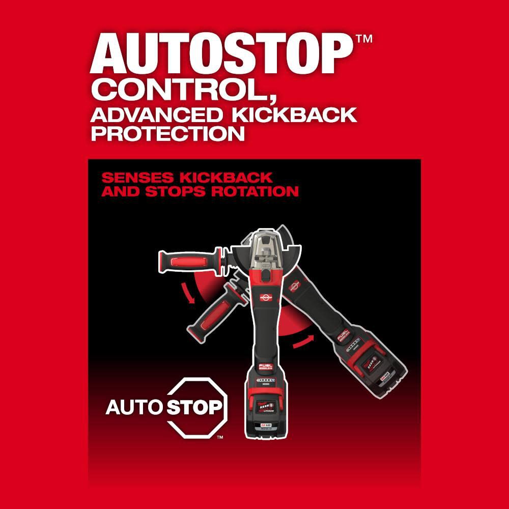 For the first time on a MilwaukeeÆ Grinder, AUTOSTOP kickback control helps prevent severe kickback, while RAPIDSTOP braking stops most accessories in under 1 second.