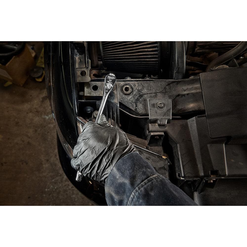 This Milwaukee extended reach ratchet is backed by their Mechanics Hand Tools Lifetime Guarantee.