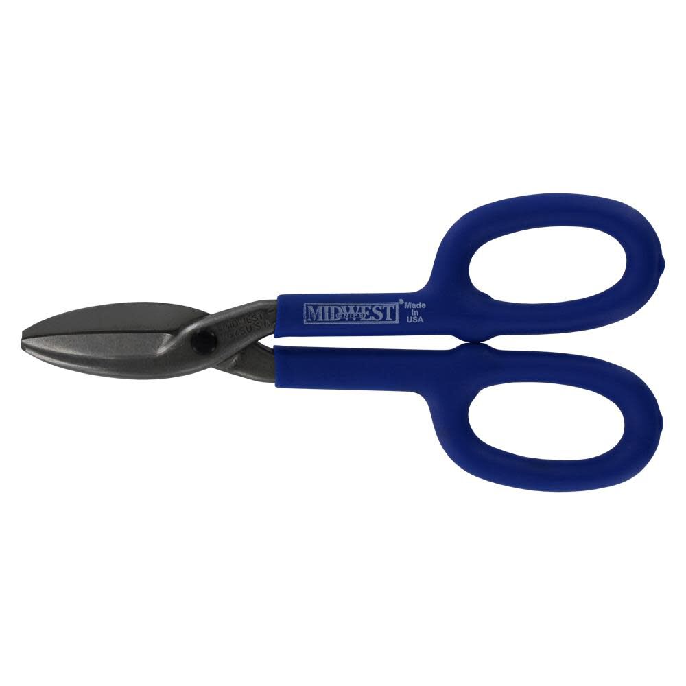 Straight tinner snips cut straight and wide curves in sheet metal and other sheet materials.