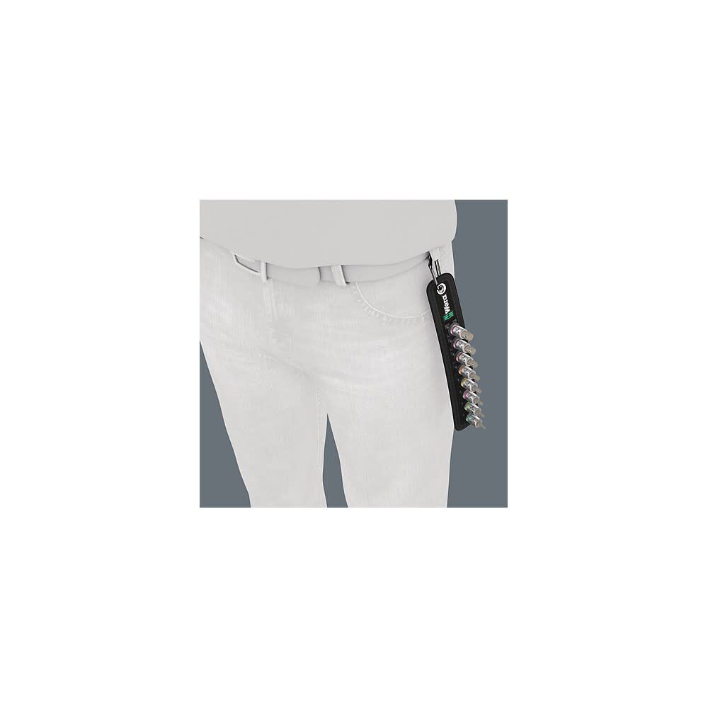 Typically Wera designed robust textile belt with 8 in-hex bit-sockets taking up minimal space.