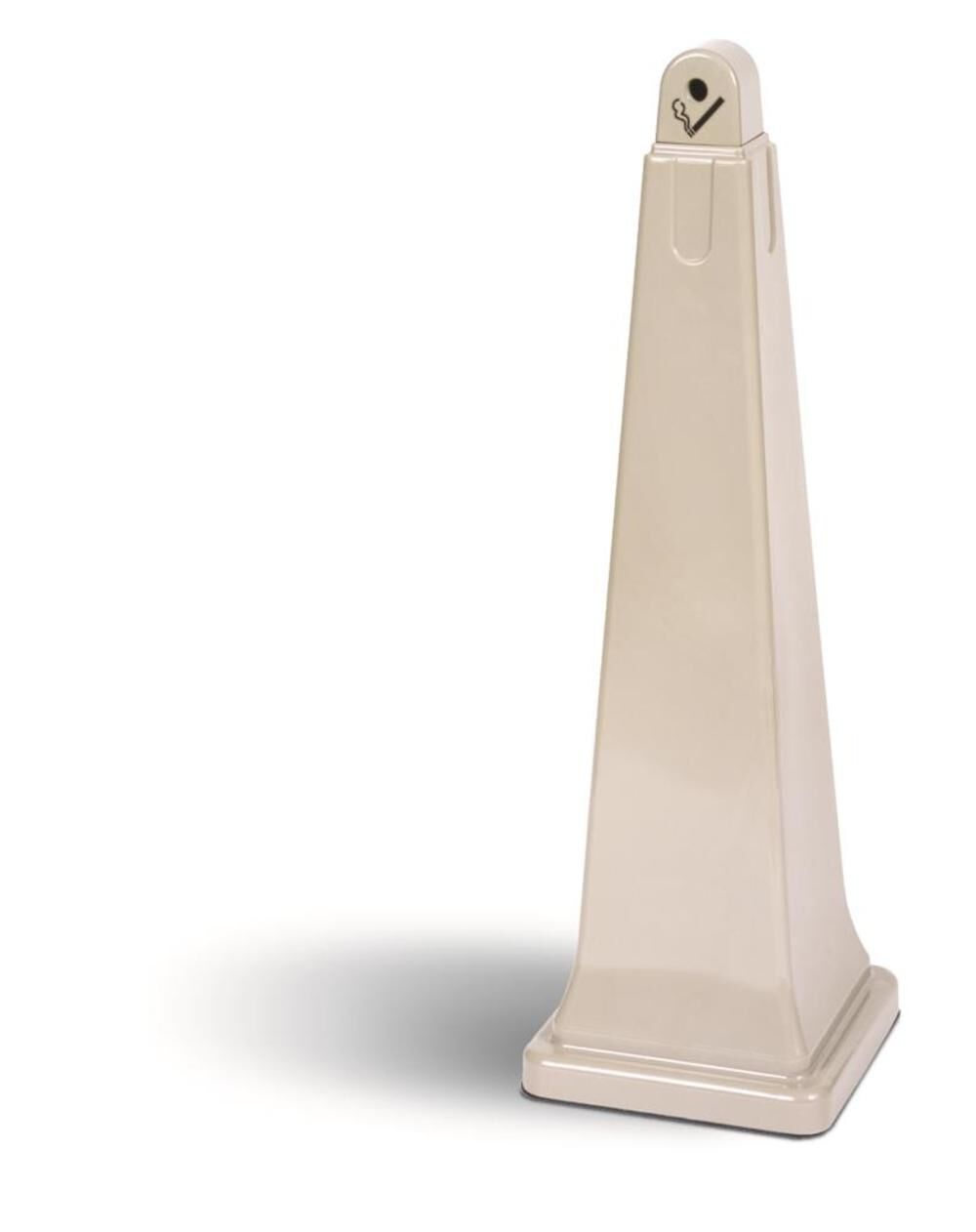 This smoking receptacle features restricted opening shields cigarette butts from view, weather and flow of oxygen.