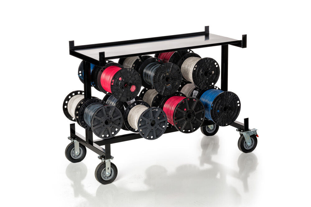 There is enough space on the Southwire wire utility cart for up to 14 spools of 2,500 feet or a combination of 500 feet and 2,500 feet spools.