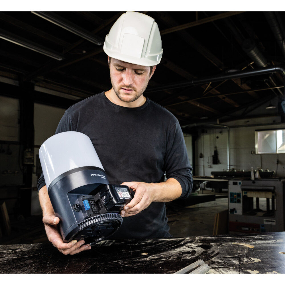 Area 6 Connect is a battery powered work light compatible with METABO / CAS battery system 18 V and all other 18 V/20 V battery packs from leading power tool brands by using the Scangrip Connector.