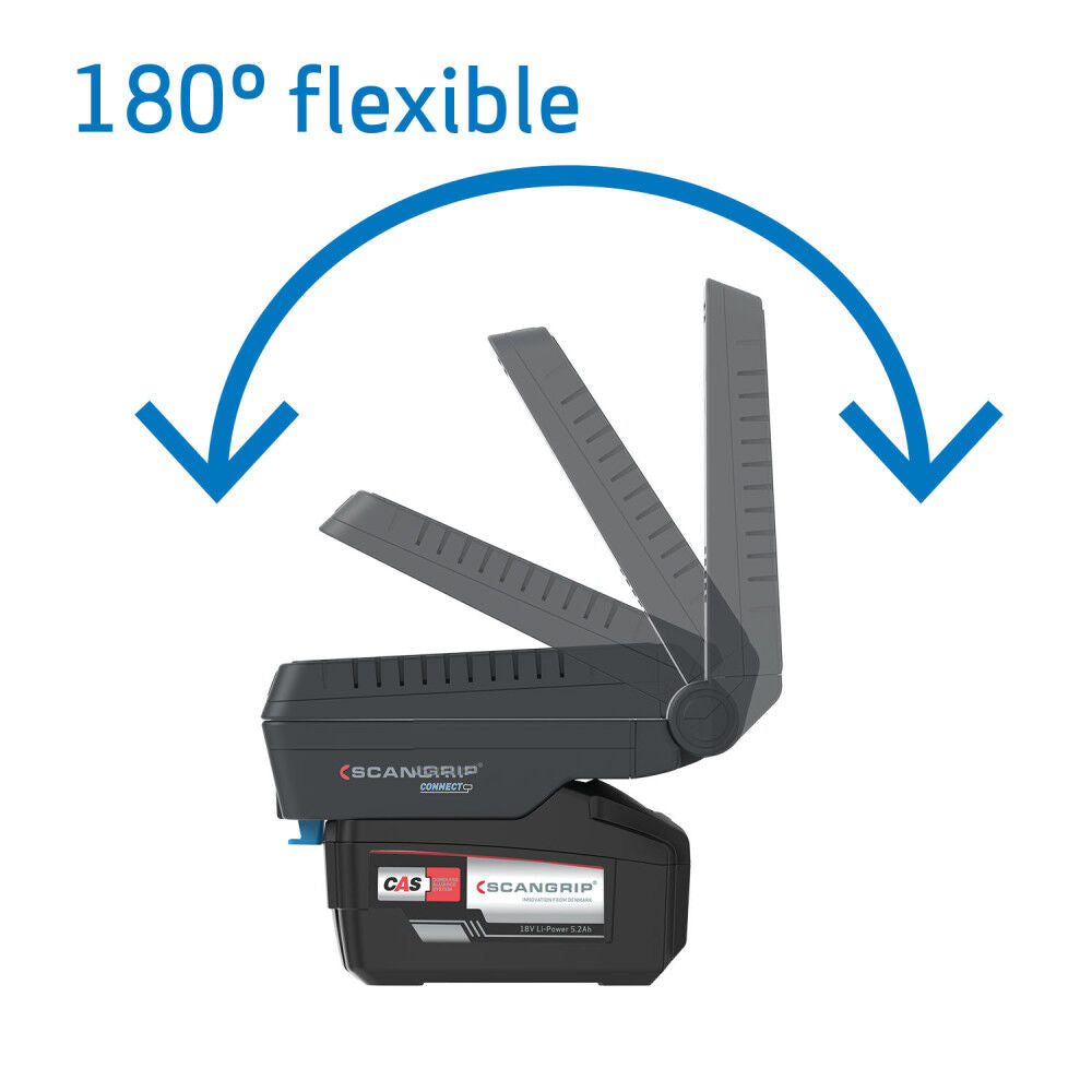 BASIC Connect is compatible with Metabo/CAS battery system 18V and all other 18V/20V battery packs from leading power tool brands by using the Scangrip Connector.