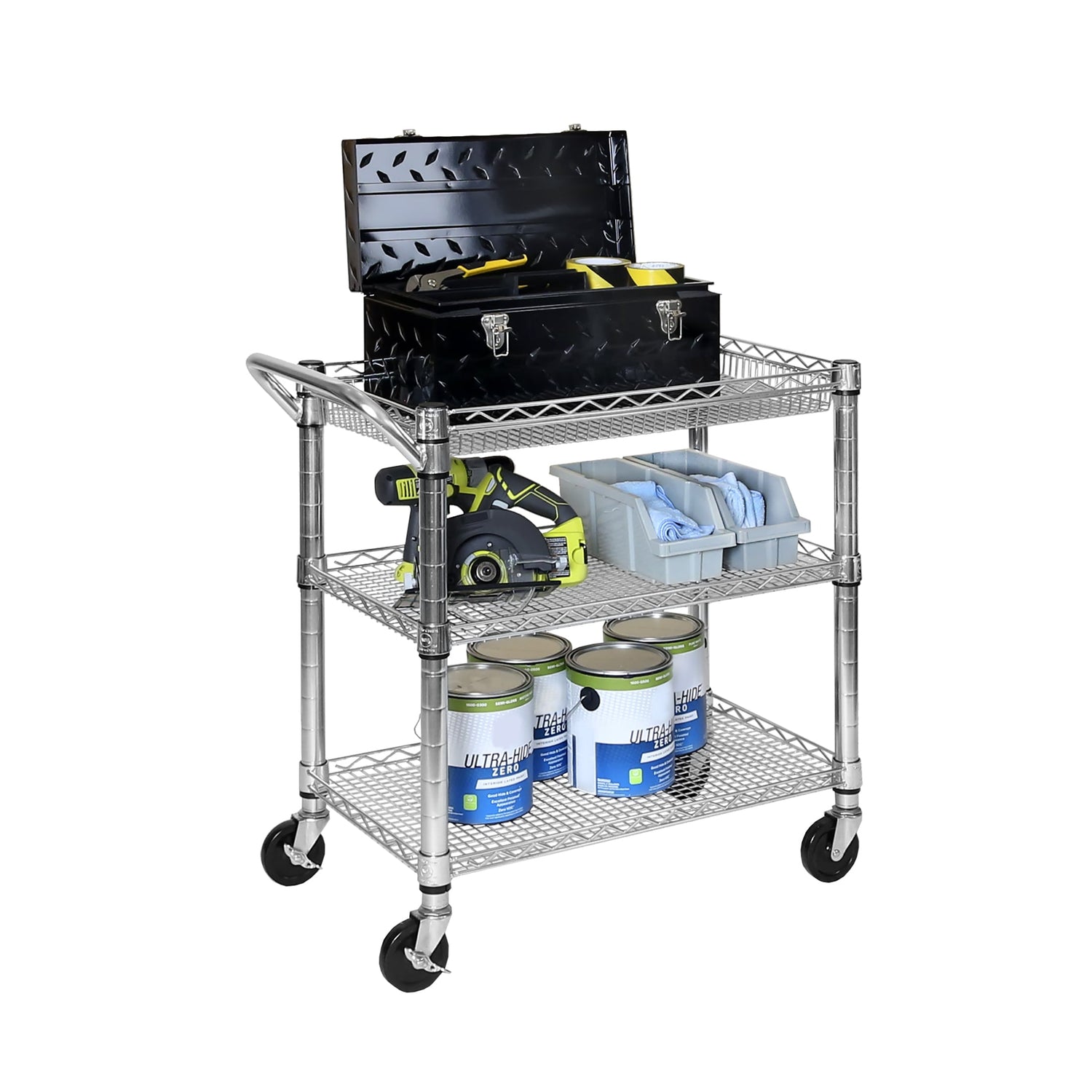 500 LBS WEIGHT CAPACITY - An extra-deep (2.75-in) top shelf lets you transport larger items with ease; Store up to 500 lbs evenly distributed across the 3 steel shelves.