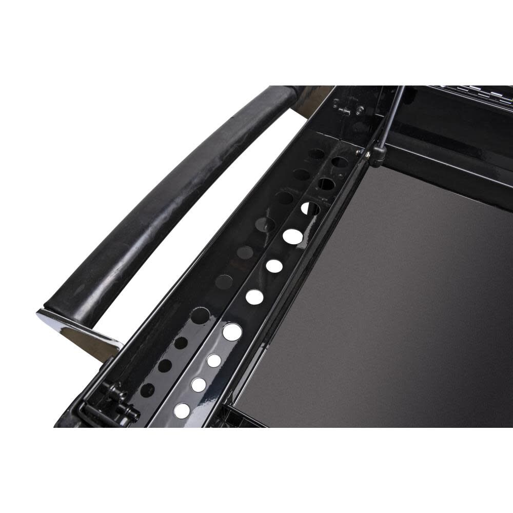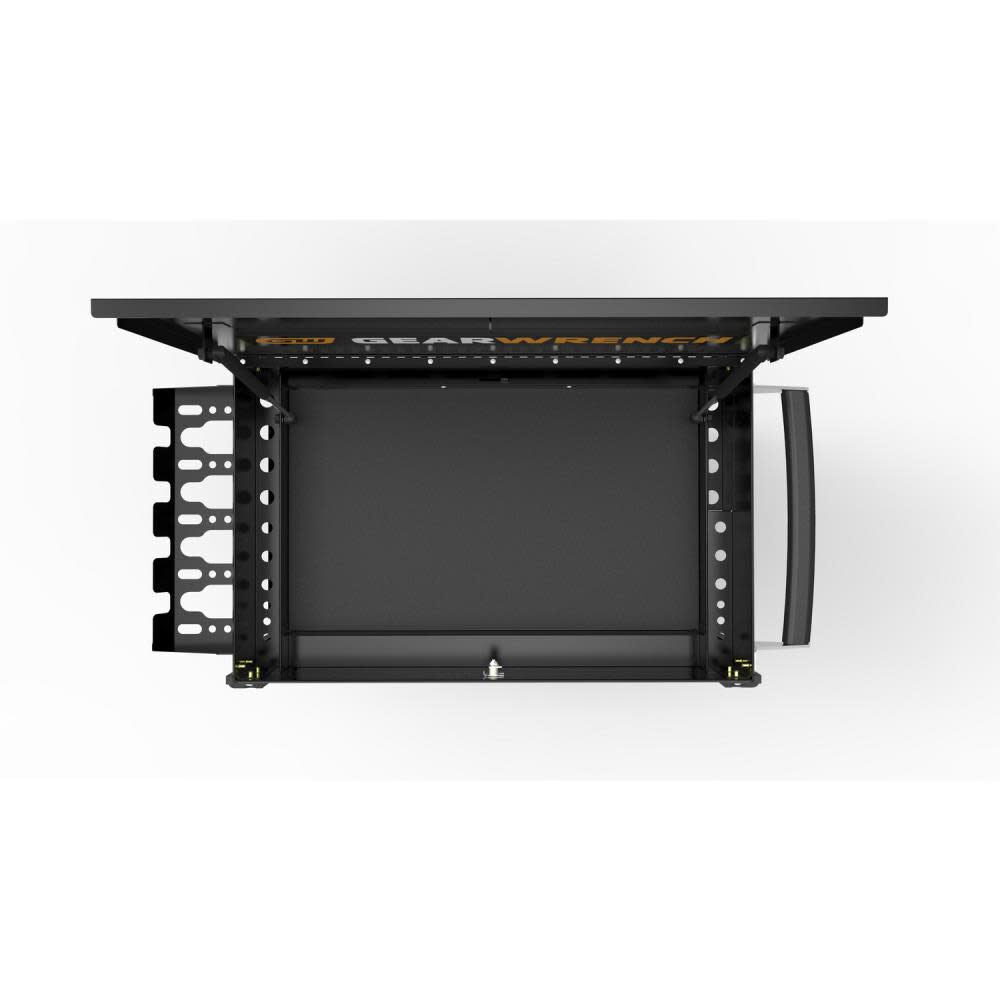 This cart also includes an external power tool rack and a storage area in the till where you can store long screwdrivers or pry bars and still lock the lid.
