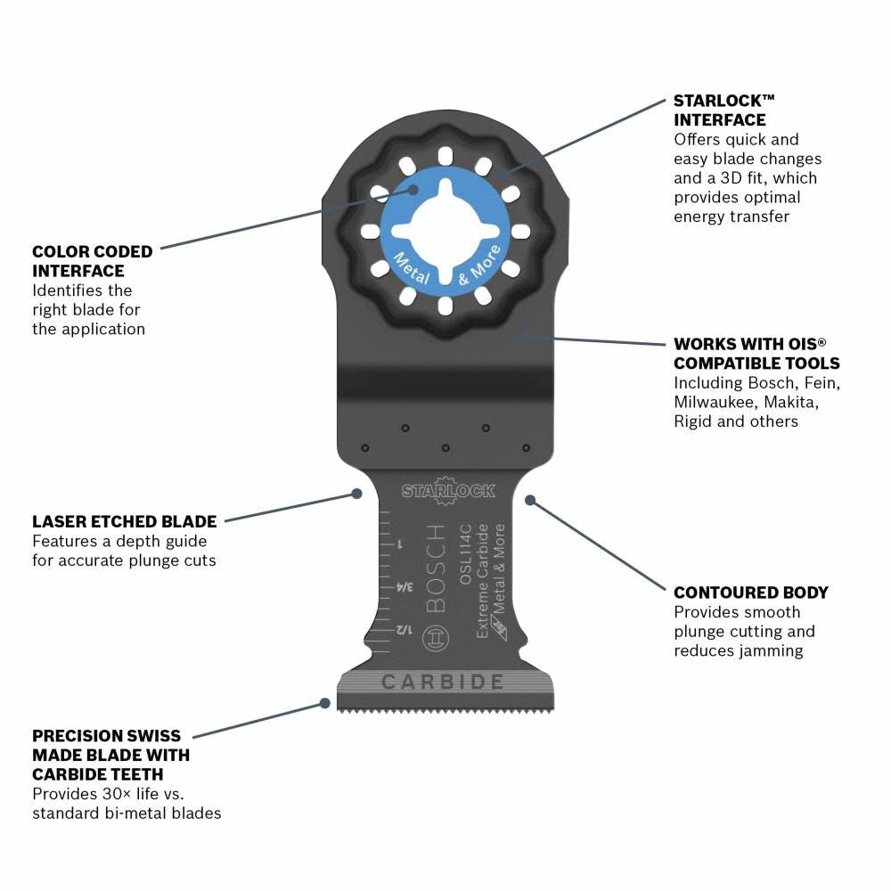 - Starlock® interface for professional performance, also works with OIS® compatible tools including Bosch, Fein, Milwaukee, Makita, Rigid, others