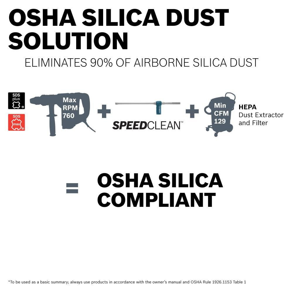 - Part of a dust-reduction engineered solution – included rubber adapter and bit works with a vacuum system to manage airborne silica dust