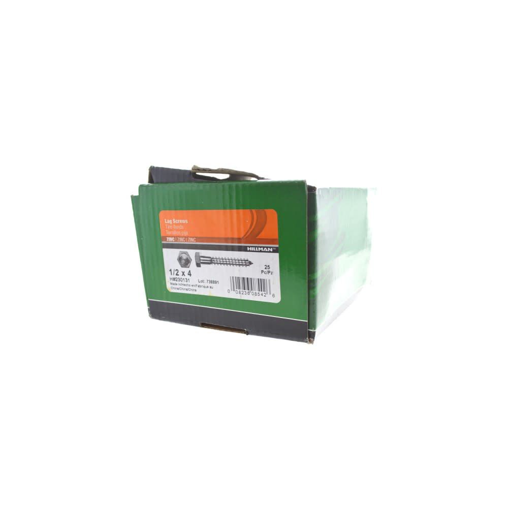 Hillman 1/2-13 x 4in Zinc Hex Lag Screw 25pk