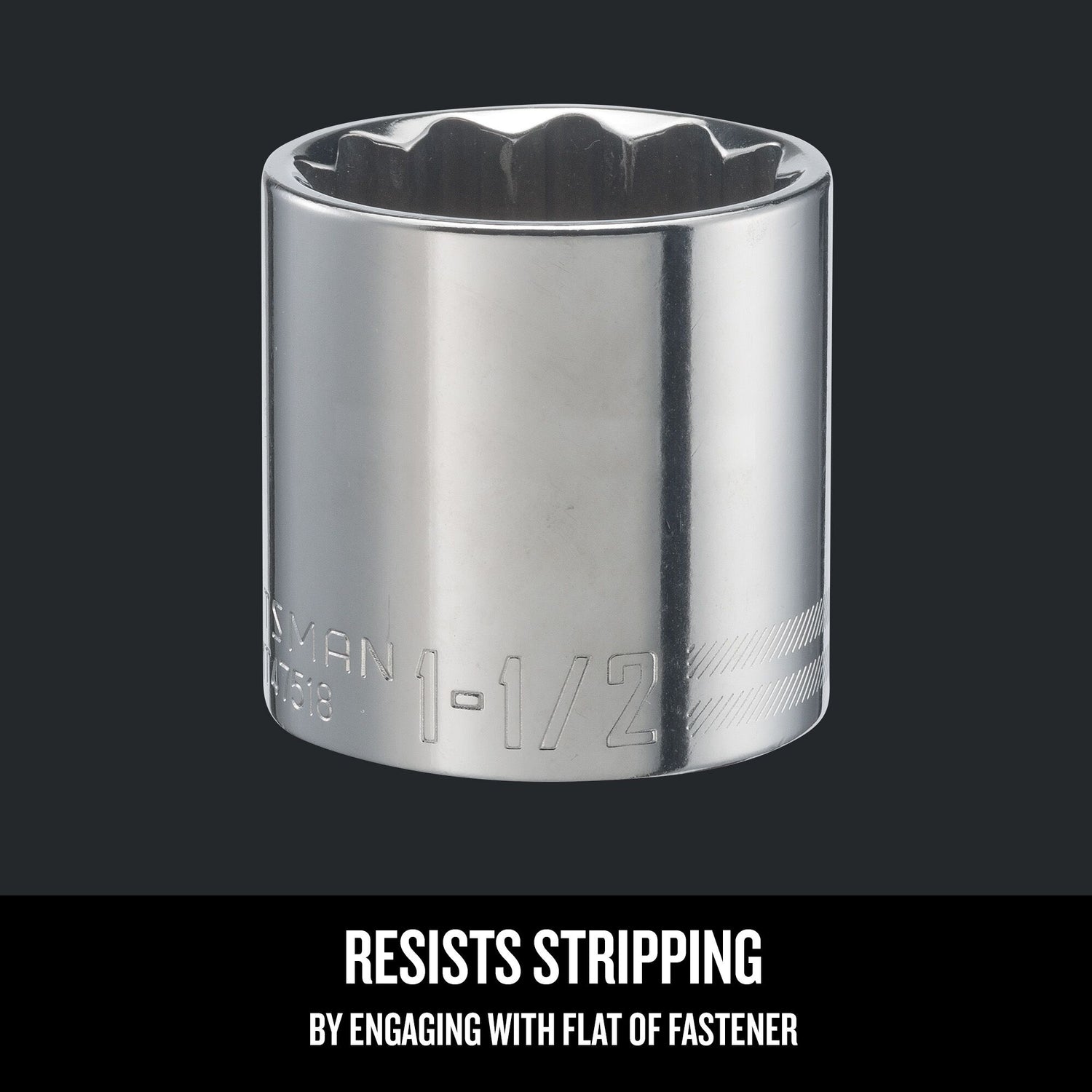 Includes (1) 1/2-in Drive 12 PT Shallow Socket SAE (1-1/2-in)