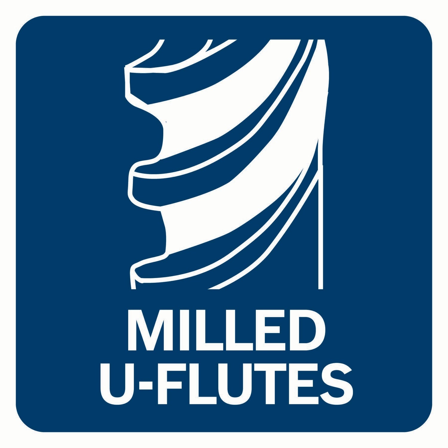 Milled U-flutes with deep-cut spiral – delivers fast material removal