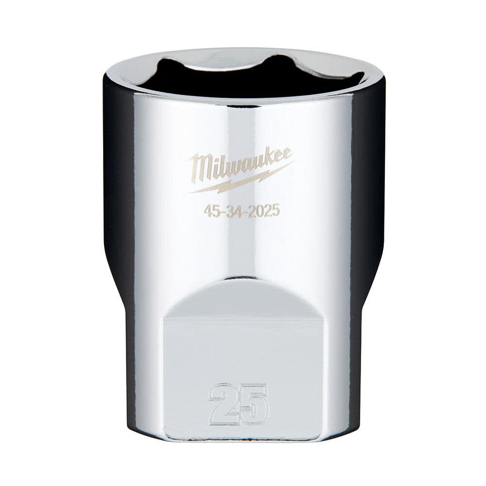 The MILWAUKEEÆ 1/2" Drive 25MM Metric 6-Point Standard Socket with FOUR FLAT Sides was designed from the ground up to be part of the most versatile socket family.